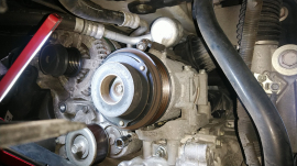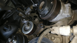 このv6エンジンはクーラーコンプレッサーをずらしてオルタネーターを抜く作業になります